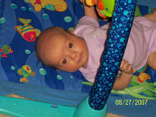 Meredith in her chair. She seems to like it ... for about 10 minutes ... then she is ready to get out.
